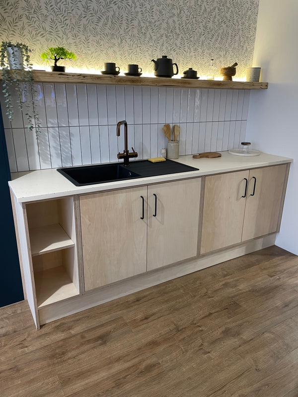 Hand-Built, Scandi-inspired birch ply kitchens, Installation only service and Howdens packages available.